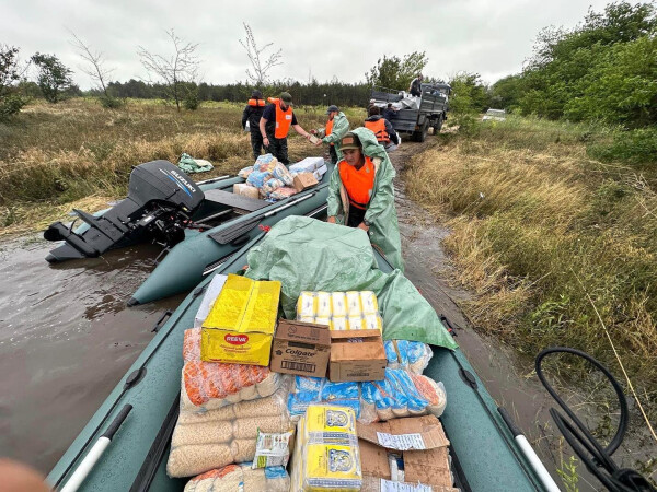It was a very difficult day. The weather is extremely bad. But there is also a happy news: we managed to organize a crossing for two settlements with about 1800 people, which are completely separated from the land due to flooding caused by the terrible explosion at the Kakhovka hydroelectric power station. We delivered more than five tons of food and drinking water to the residents. I am grateful to God for our strong and united team, which helped us to cope with such a difficult task. Together we are a force