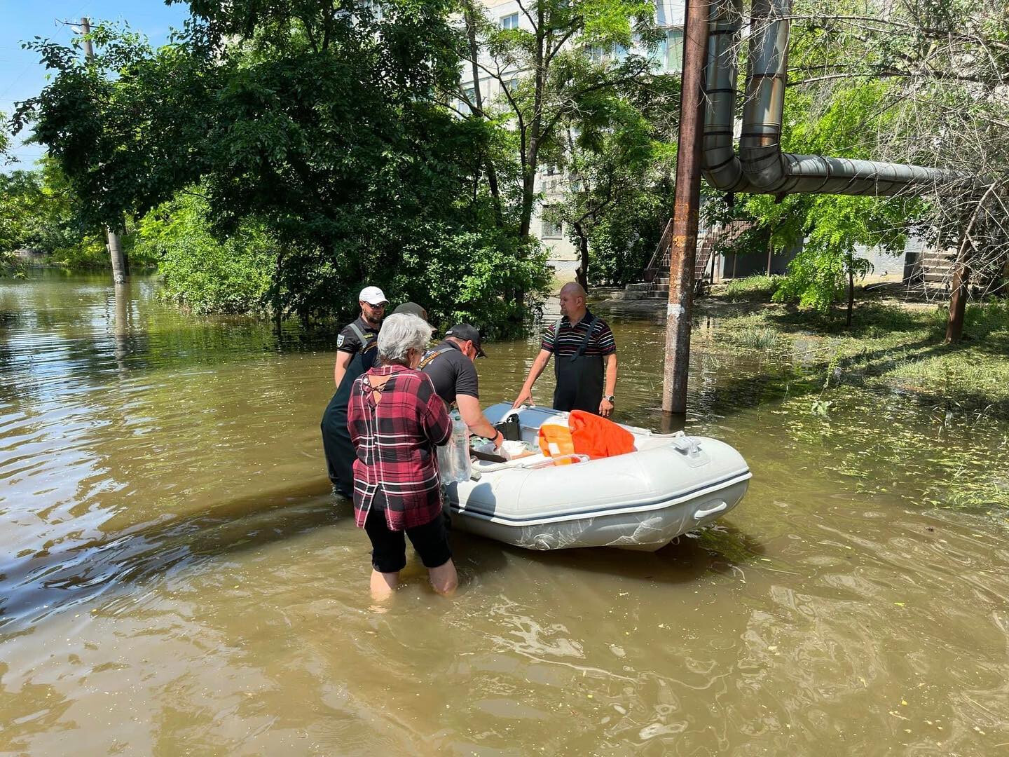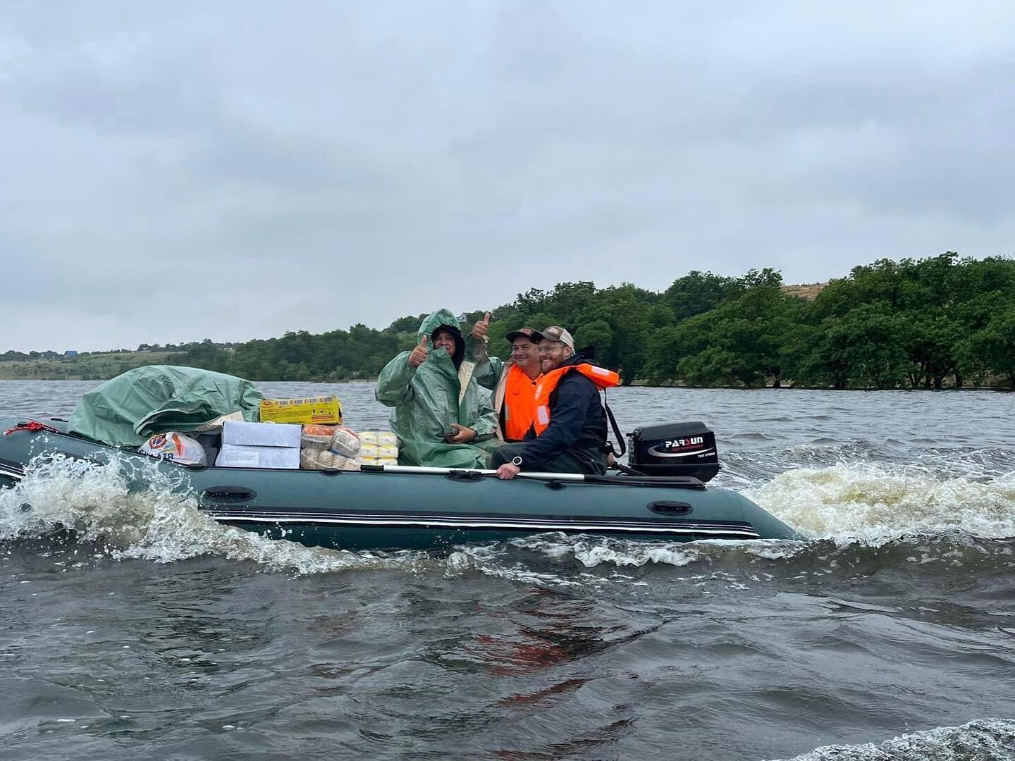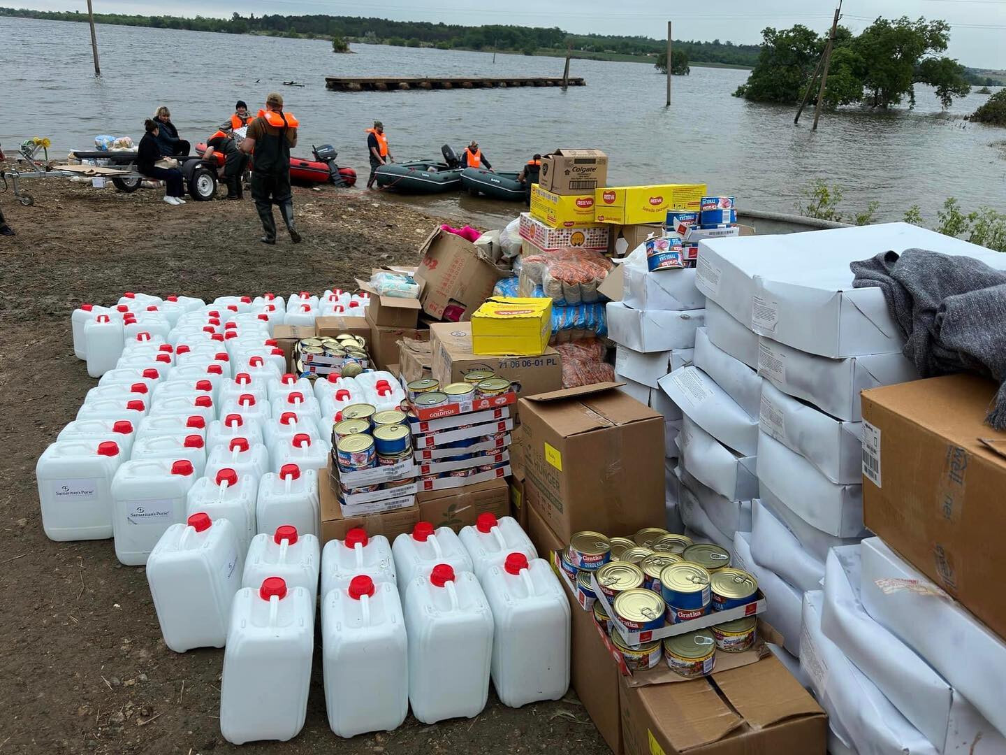 It was a very difficult day. The weather is extremely bad. But there is also a happy news: we managed to organize a crossing for two settlements with about 1800 people, which are completely separated from the land due to flooding caused by the terrible explosion at the Kakhovka hydroelectric power station. We delivered more than five tons of food and drinking water to the residents. I am grateful to God for our strong and united team, which helped us to cope with such a difficult task. Together we are a force