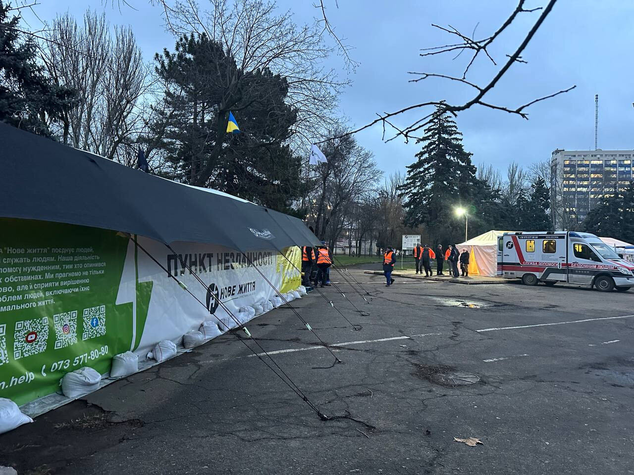 With the onset of frost in Odessa, two tents were opened on Kulikovo Field — the "Point of Resilience" and the "Warming Point" for the homeless and socially vulnerable segments of the population.