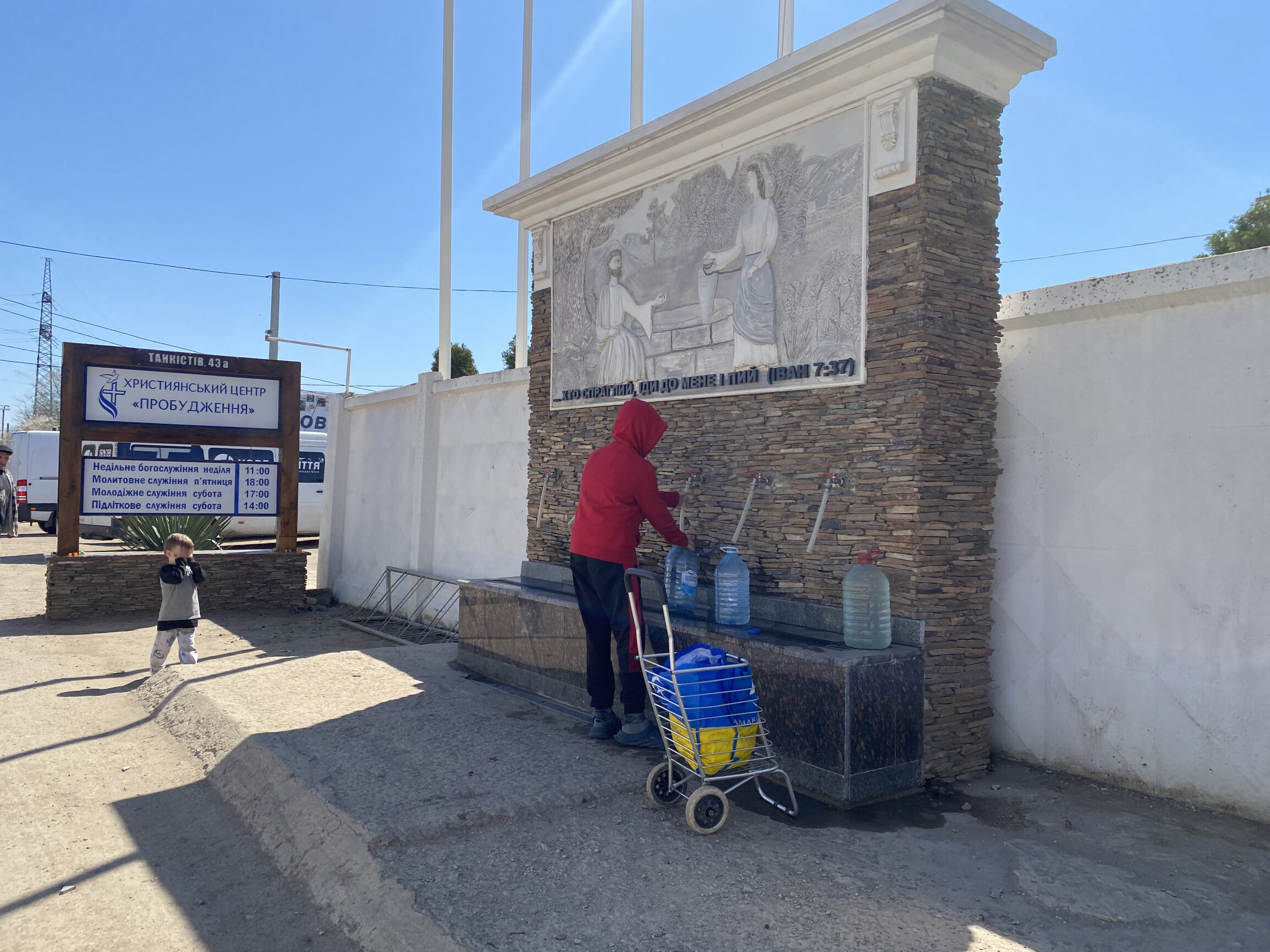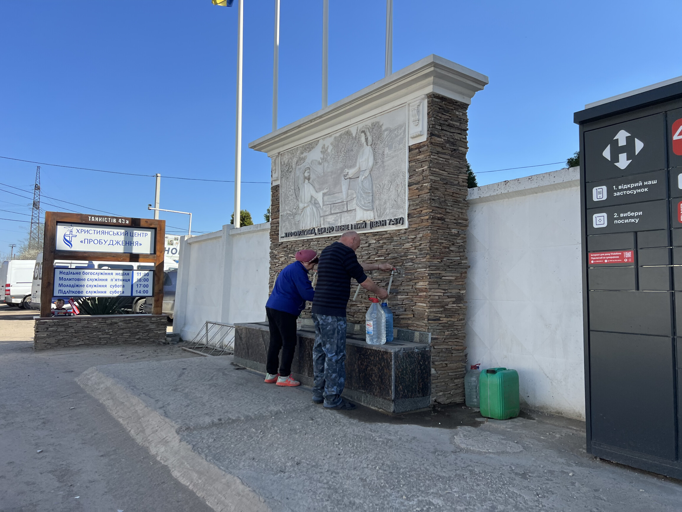 На території християнського центру «Пробудження» (вул. Танкістів, 43А) щодня працює безкоштовний бювет із питною водою, відкритий християнською місією «Нове Життя» ще у 2022 році.