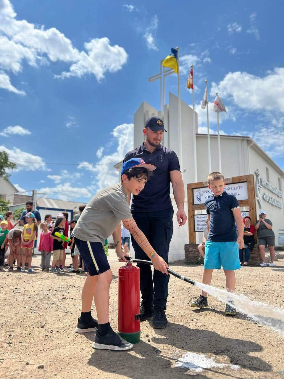 Разом з працівниками служби МНС діти навчали правилам безпеки та першої допомоги, що актуально для кожного молодого українця .