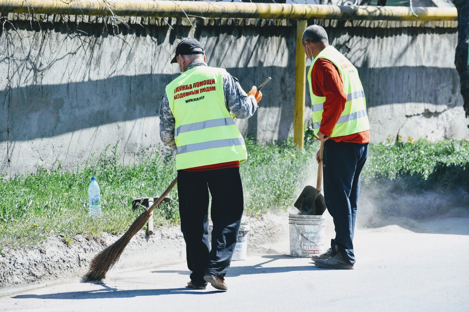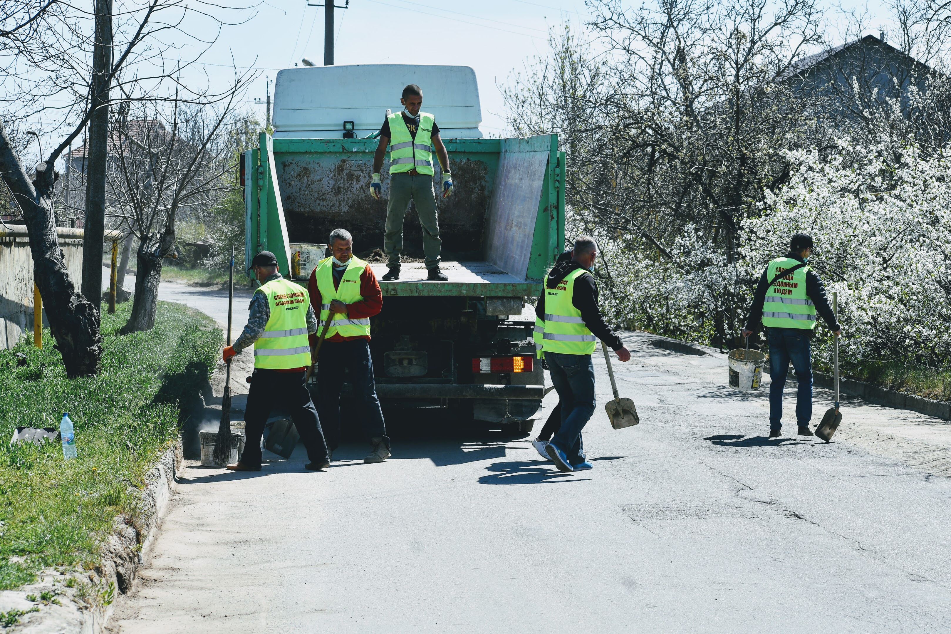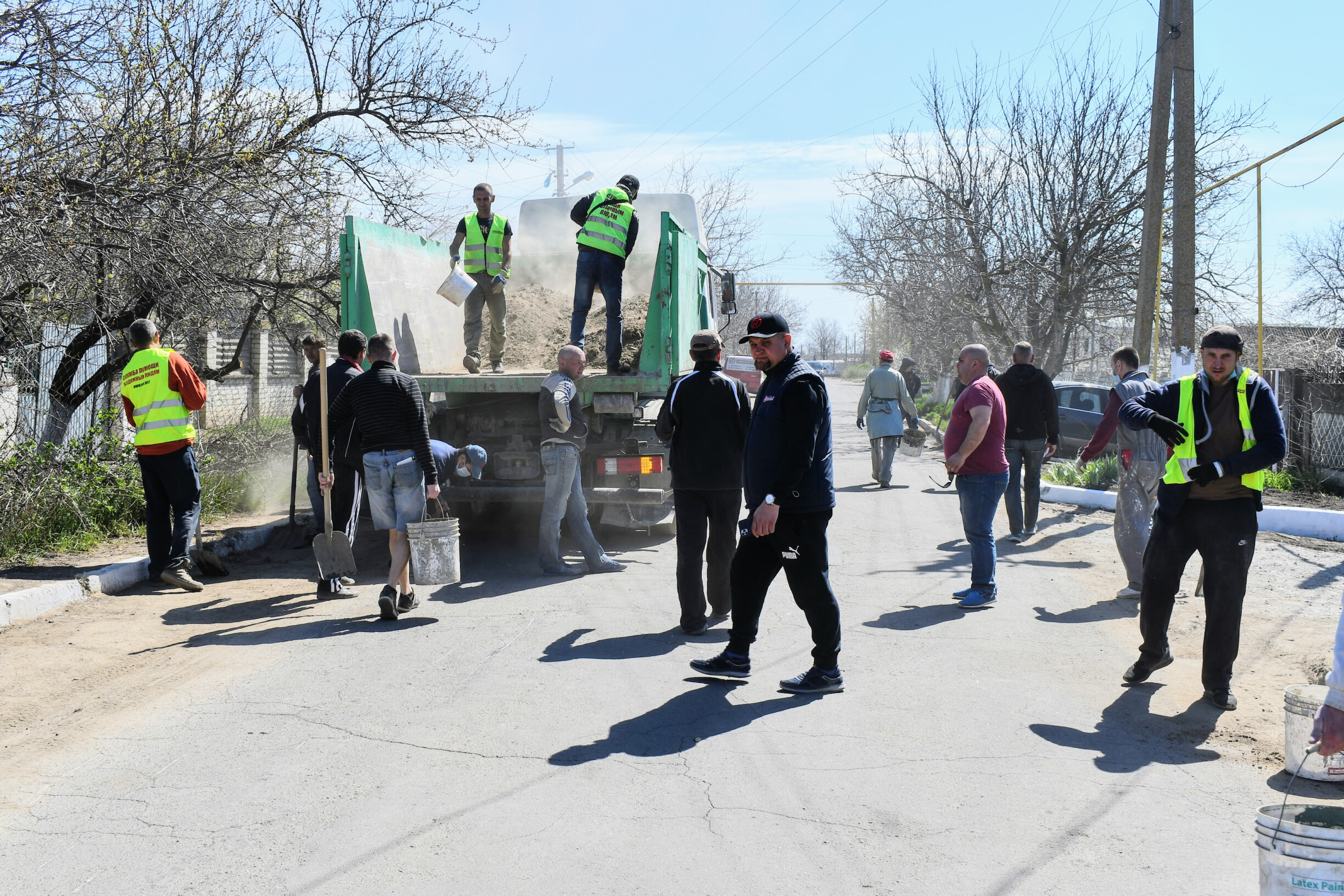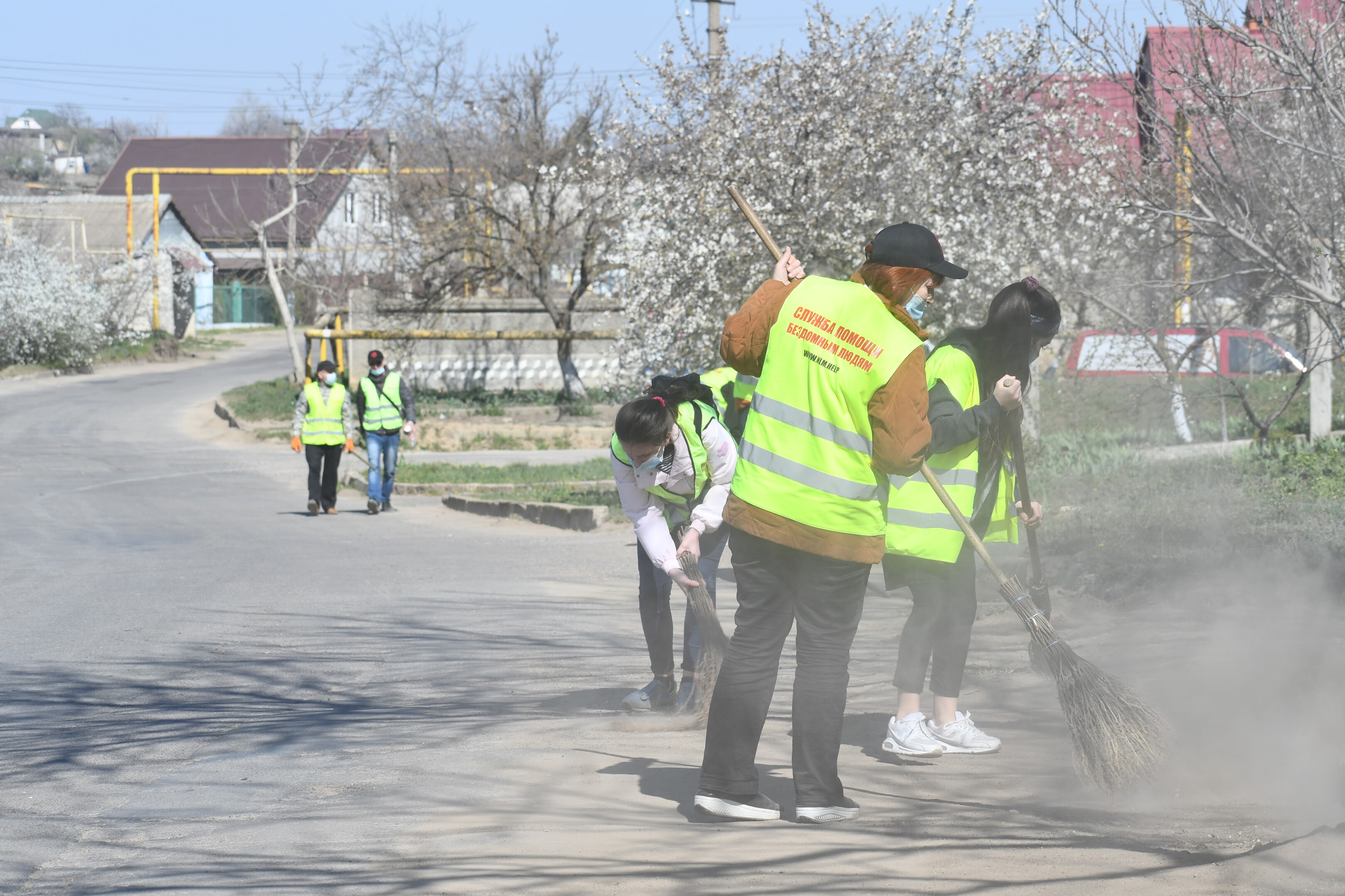 Сьогодні вихованці Християнської Місії «Нове Життя», які раніше були бездомними, провели суботник у смт. Великий Дальник, Одеська область. Близько сорока людей прибирали вулицю, де розташований один із центрів Місії: чистили газони, бордюри, збирали сміття.